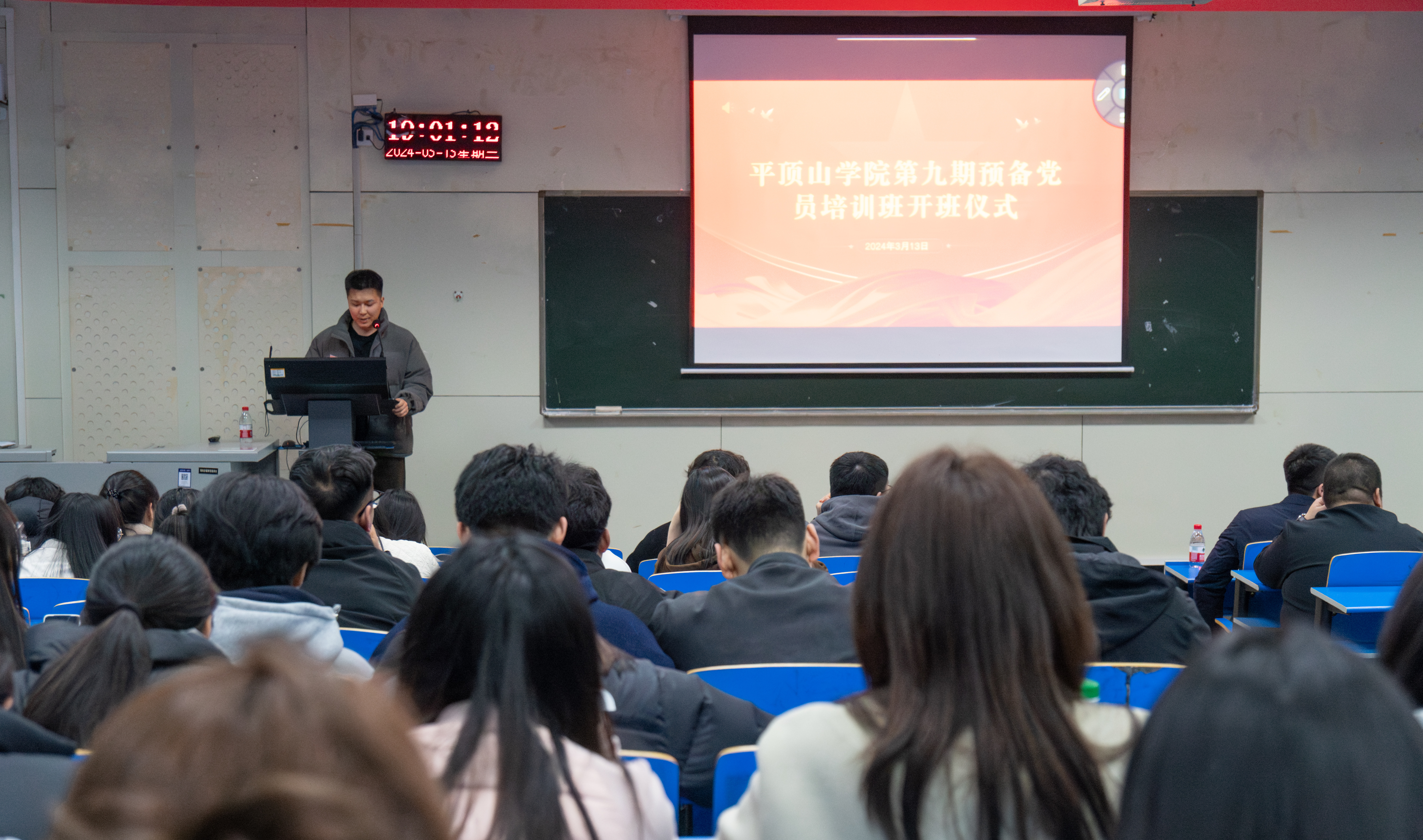 为进一步加大党员培训力度,响应“能力作风建设年”活动要求,进一步强化党员学习,提升党员意识,增强基层党组织的凝聚力、向心力、战斗力。3月13日,tyc8722太阳集团党校于4206教室举办第九期预备党员培训班开班仪式,本次培训班由学校党校主办,太阳集团网站8722党委承办。tyc8722太阳集团党委组织部组织科王利军、太阳集团网站8722辅导员宋坤宇与牛茂源、组织员王琨以及176名学员参加此次开班仪式。开班仪式由宋坤宇主持。