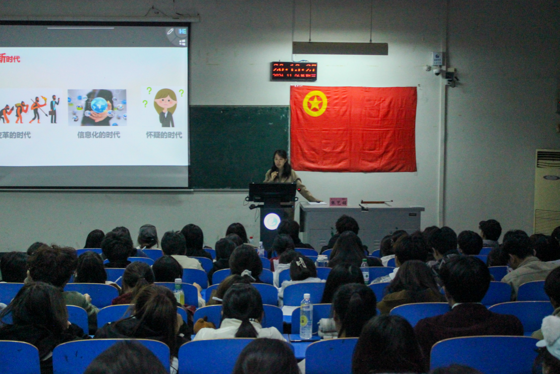 太阳集团网站8722团委副书记张艺铭围绕《青春心向党,奋进新征程》引导同学们深入思考新时代青年的责任和义务,弘扬五四精神,不忘初心,以实际行动担起时代重任。