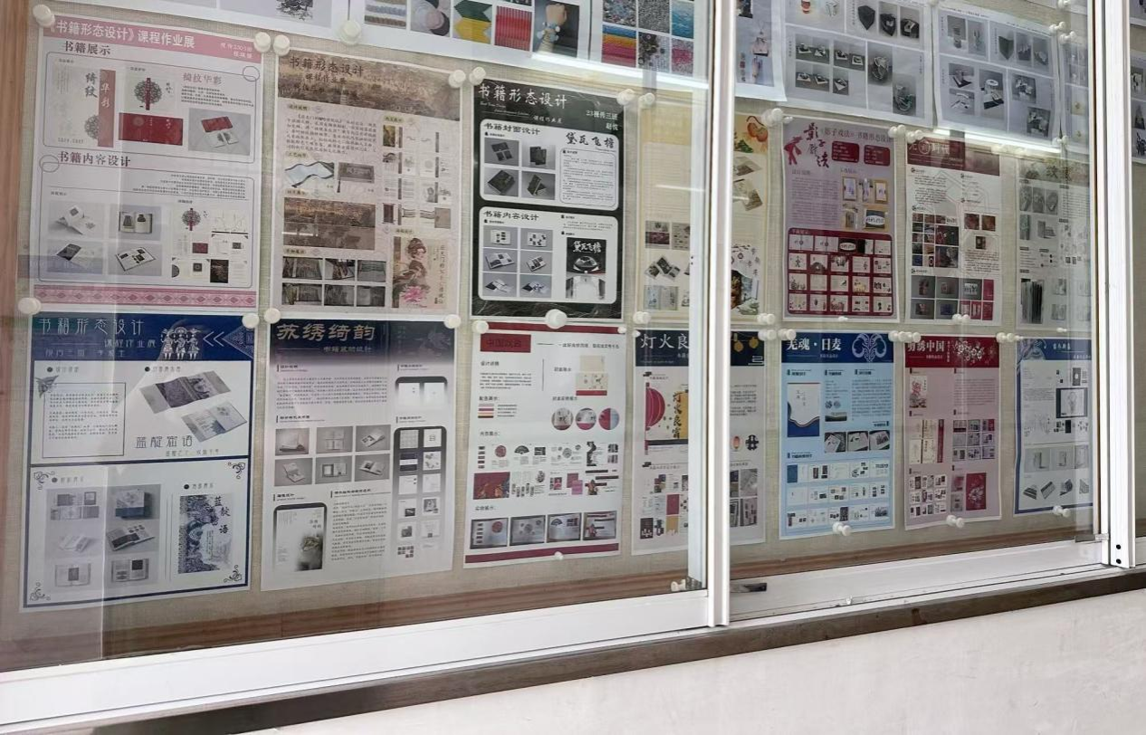 《书籍形态设计》作为视觉传达设计专业的重要课程之一,旨在培养学生对书籍表现手法的系统性认知与创新性运用能力。课程以书籍的整体形态为核心,系统讲解书籍的封面设计、版式编排、材料选择、装订工艺等知识模块,引导学生理解书籍从平面到立体、从静态到动态的多维视觉语言表达逻辑。在课程教学过程中,授课教师采用理论与实践相结合的方式,通过经典书籍案例剖析、前沿设计趋势解读夯实理论基础,并引入数字化设计工具操作、传统装帧工艺体验等实践环节,引导学生深入理解书籍设计的文化内涵与技术实现路径。通过一系列精心设计的课程项目和作业,如主题书籍装帧设计、非遗书籍设计、互动式书籍原型制作等,学生们得以将所学知识运用到实际设计中,在反复打磨作品的过程中,不断提升自己的专业素养和实践能力,逐步成长为能够兼顾艺术审美与市场需求的复合型书籍设计人才。