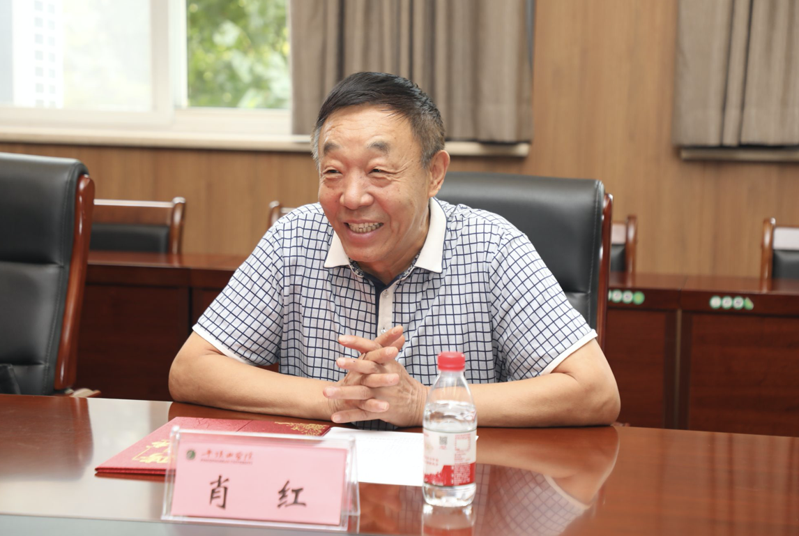 聘任仪式前,校党委书记华小鹏同肖红教授进行了亲切交谈。