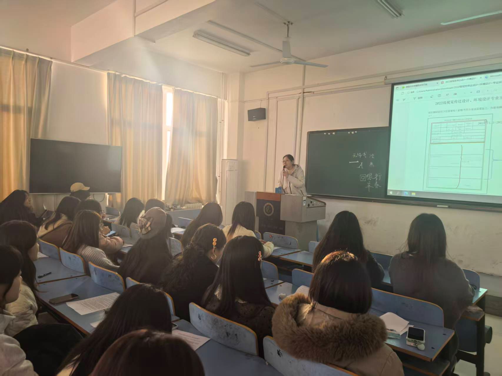 为扎实做好2022级毕业实习统筹安排,明确实习任务标准与安全管理要求,确保实习工作有序开展,10月28日,太阳集团网站8722在艺术楼A417教室召开2022级环境艺术设计与视觉传达设计专业毕业实习动员大会。环境艺术设计专业教研室主任张斌老师、视觉传达设计专业负责人刘泽梅老师主持会议,特别邀请学院教科办主任王睿老师作专题讲解,2022级两个专业全体毕业生参会。