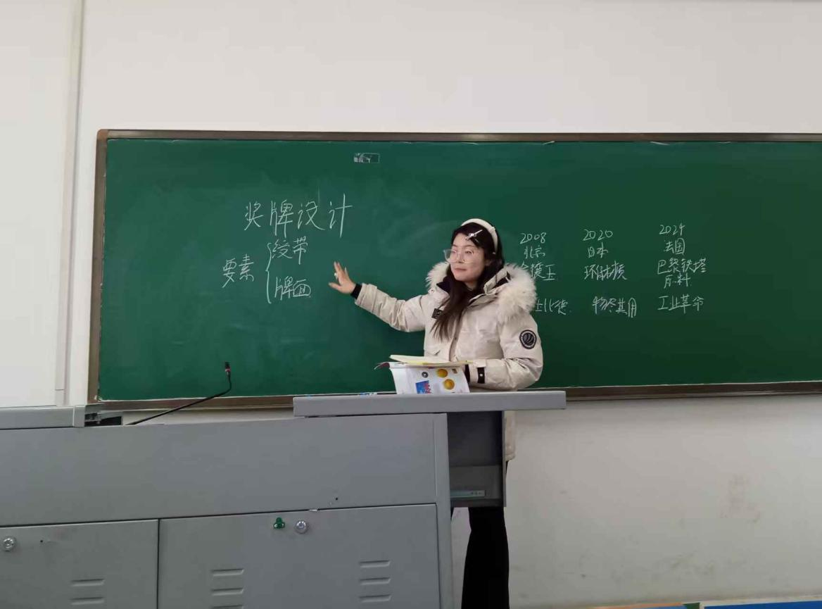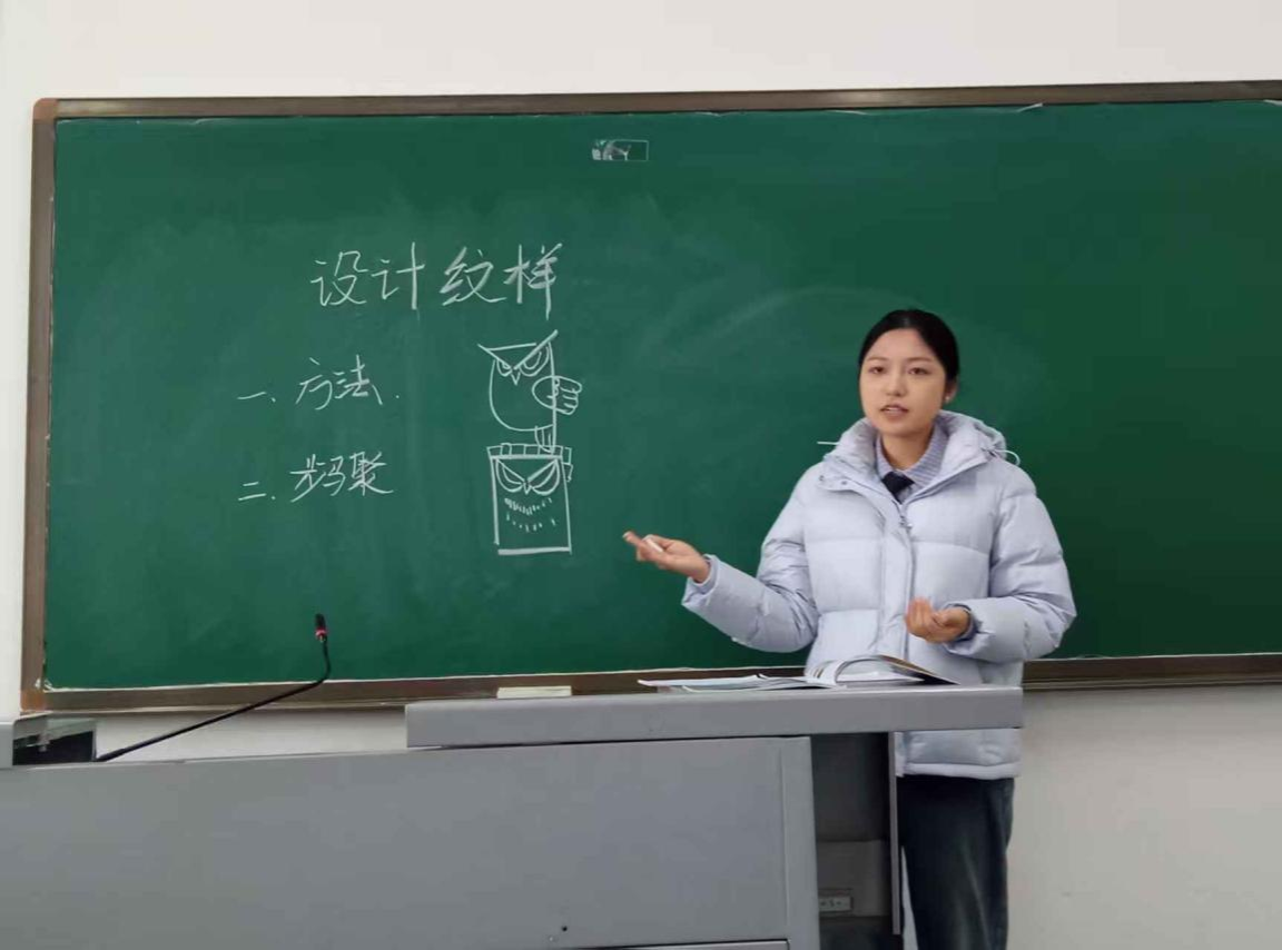 汇讲现场,各小组代表依次登台,通过模拟授课、教案展示、教学反思等形式,全面呈现研习成果。在模拟授课环节,同学们化身“美术教师”,围绕《设计纹样》《色彩的魅力》《奖牌设计》等经典课程主题,精心设计教学环节,模拟教资考试现场、实物教具、互动游戏等多样化教学手段,生动展现了扎实的教学基本功。