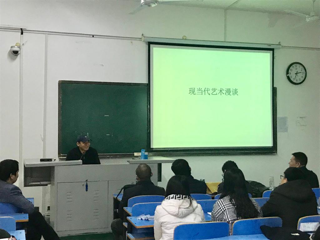 11月16日,中原文化艺术学院教授唐亚应邀来我院讲学,在艺术楼411教室作了题为《现当代艺术漫谈》的学术报告。美术学教研室专业教师以及15、16美术学专业学生聆听了报告。报告会由副院长刘夙凯主持。