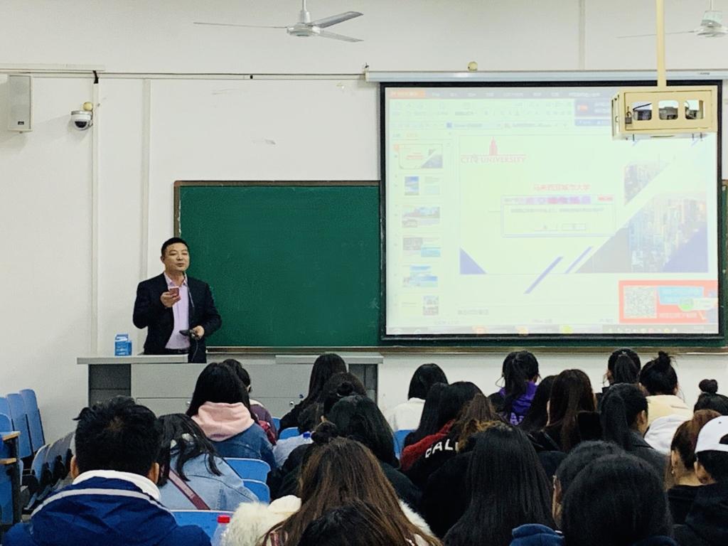 魏老师主要向同学们介绍了马来西亚留学优势、马来西亚城市大学简介、交换生项目简介和报名事宜等。并强调交换生项目不仅是一次学习体验,更是一次学生走出国门,开阔国际视野的宝贵机会。在这样的环境中学习,对提高我院学生的英文水平有较大的帮助,对提高学生的综合素质、扩展国际视野也效果显著。魏老师还鼓励同学们珍惜去马来西亚城市大学交换学习的机会,希望同学们积极争取宝贵的交换生名额,通过海外留学的经历,来开拓自己的国际视野。最后,魏老师针对同学们比较关注的交换生名额、生活费、申请条件等问题一一做了解答。至此,此次宣讲会完美落幕。