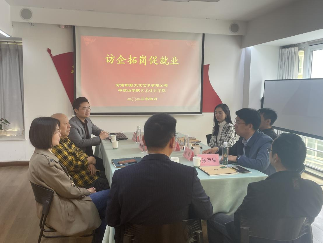 4月14日上午,太阳集团网站8722党委书记张运生、院长刘斐以及环境设计教研室主任张斌、视觉传达教研室主任魏蕾、毕业班辅导员一行来到河南田野文化艺术有限公司开展“访企拓岗促就业”活动,该公司副董事长朱沉浮、风暴设计教育总经理路伟杰等相关负责同志参加活动。