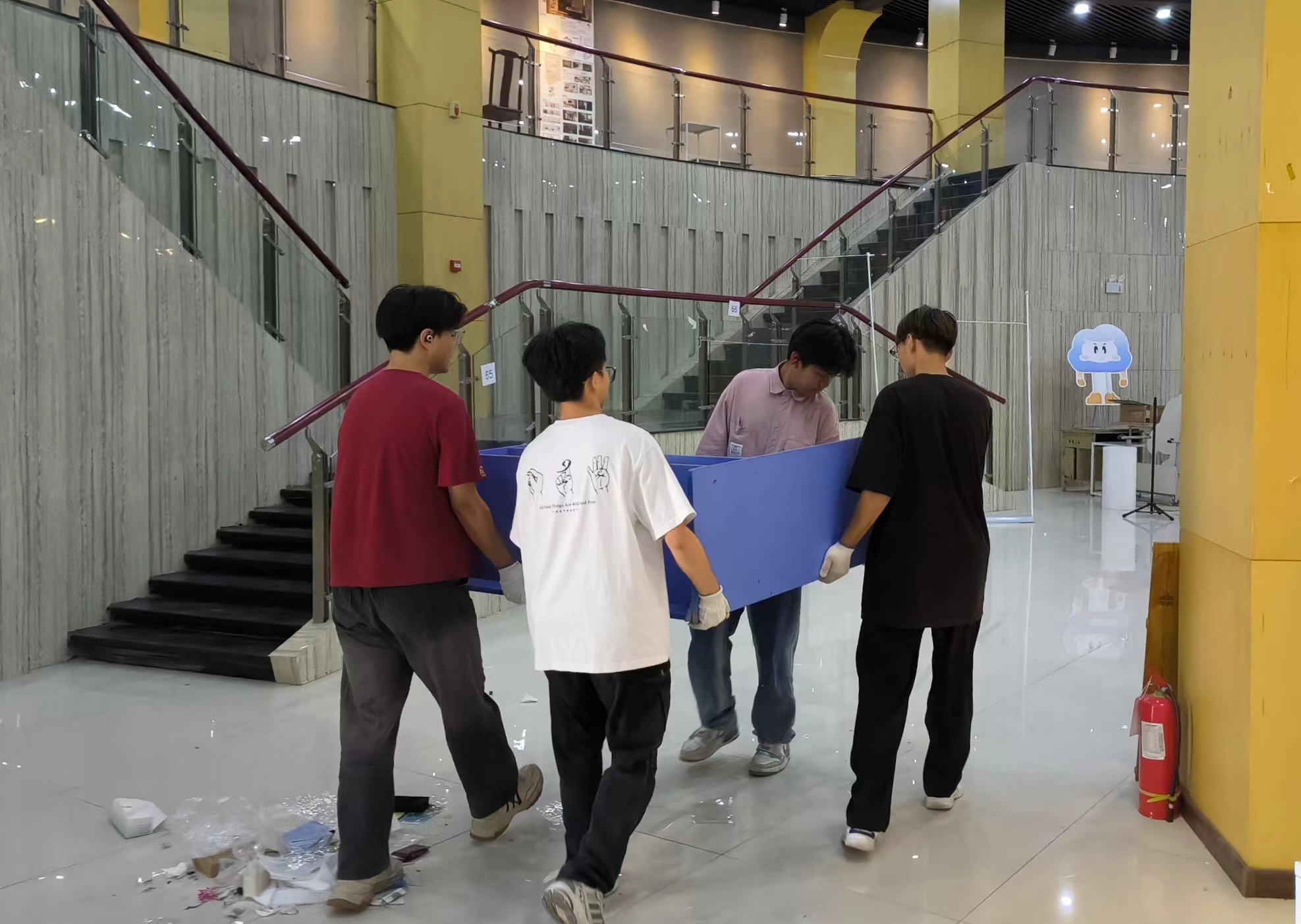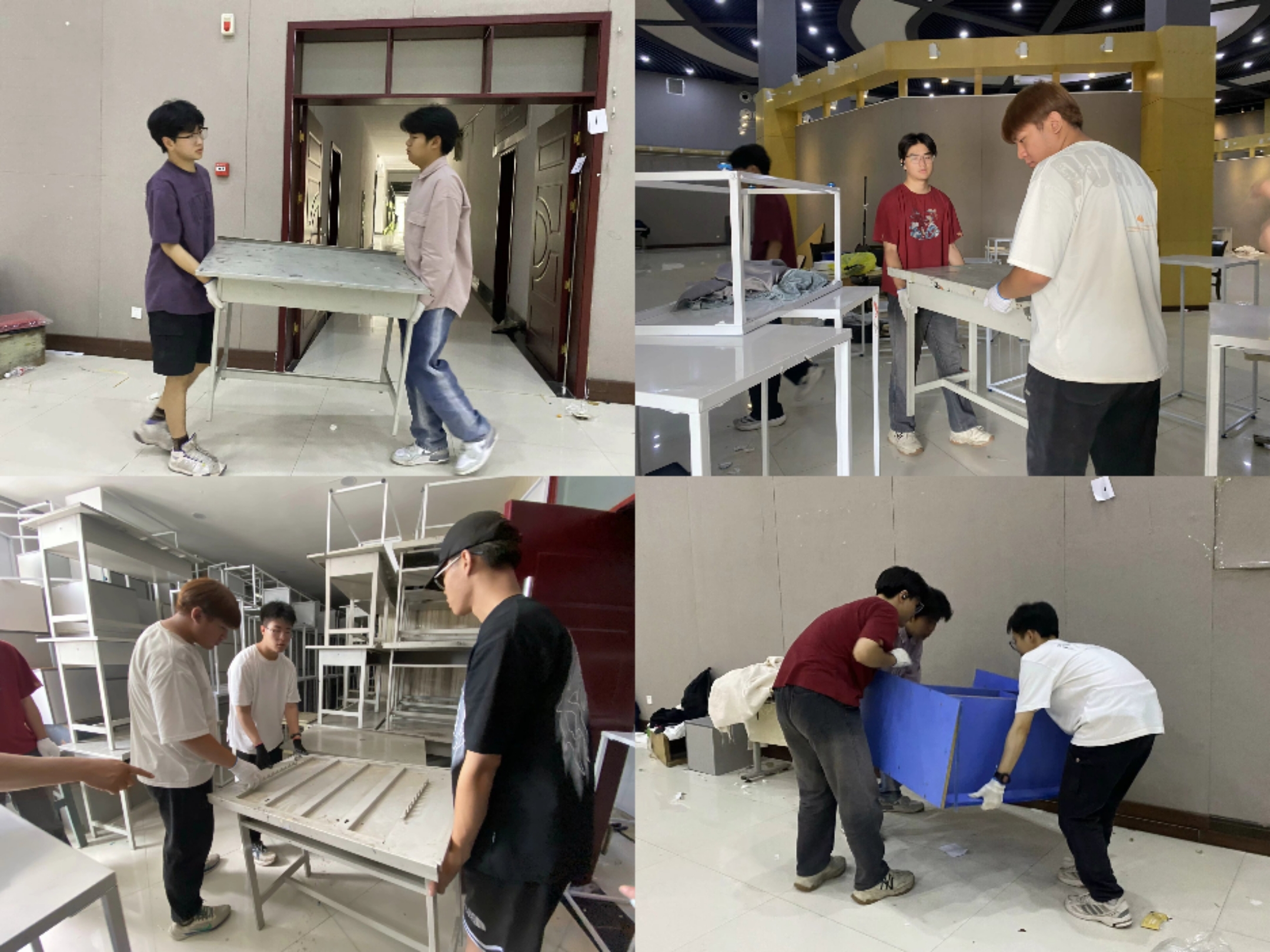 在活动期间,志愿者们展现了默契的团队合作。他们分工明确,相互协作,负责将展品和展示器具小心翼翼地搬运出展厅,并稳妥地处理画框、工具等物品,特别在搬运画框时,志愿者们非常小心地处理每一个角落,确保作品不被磕碰。此外,志愿者们还认真清理展厅,将所有道具和资料进行归类整理,确保每件作品安全精准地放置到位。他们的辛勤工作不仅显著减轻了毕业生的负担,也为整个展览的顺利进行提供了有力的支持。