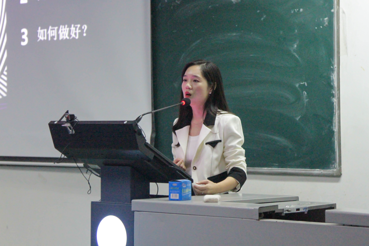 魏蕾给新生们详细介绍了视觉传达设计的概念、发展历程及未来趋势。她从课程设置、办学条件和就业方向等模块对新生进行了专业教育。她的报告使学生们更加直观的了解视觉传达设计专业,明确学习方向。