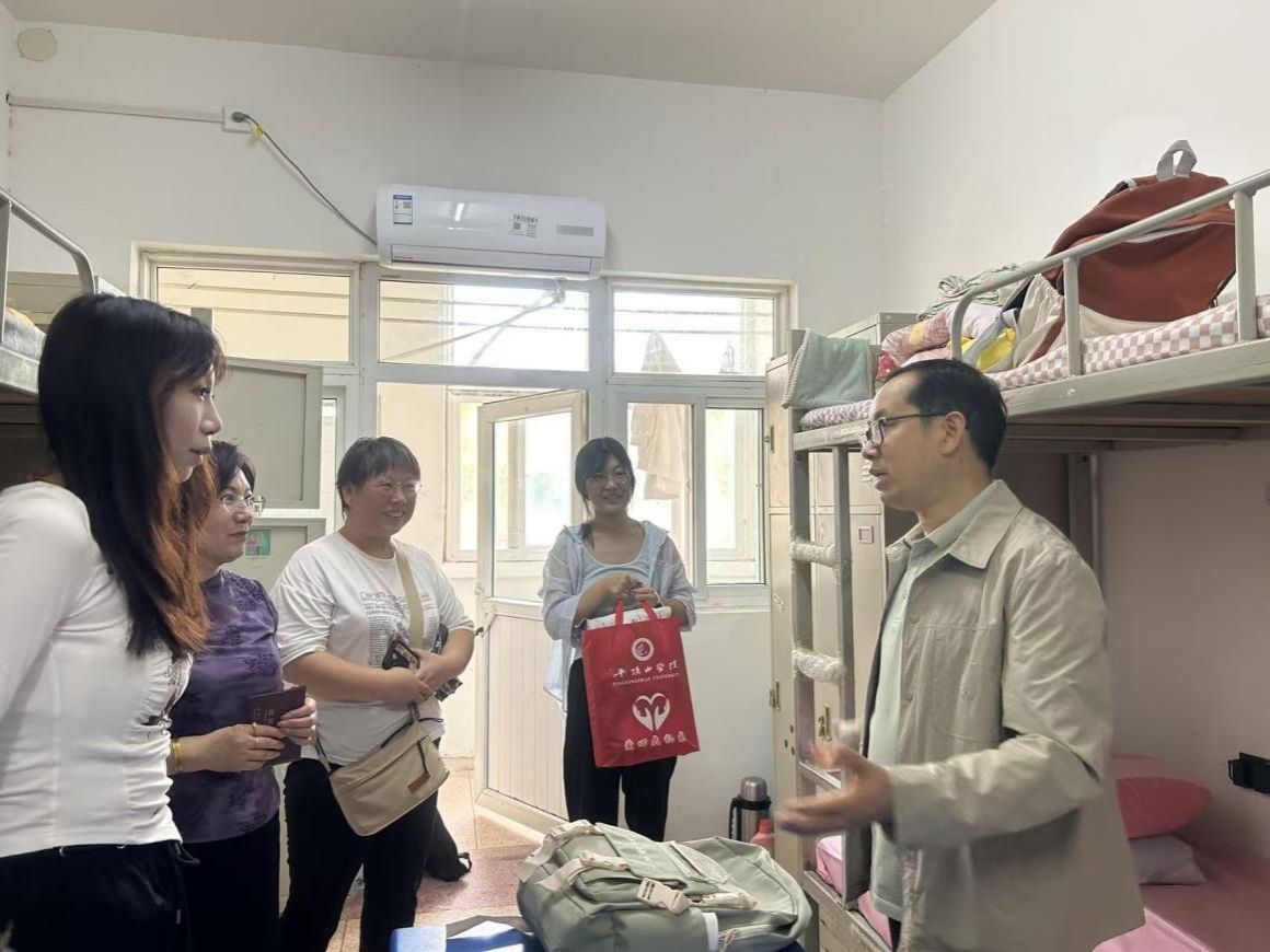 9月6日,太阳集团网站8722党委书记张运生、副书记任高举和新生辅导员来到学生宿舍,为家庭经济困难的学生发放“爱心大礼包”。