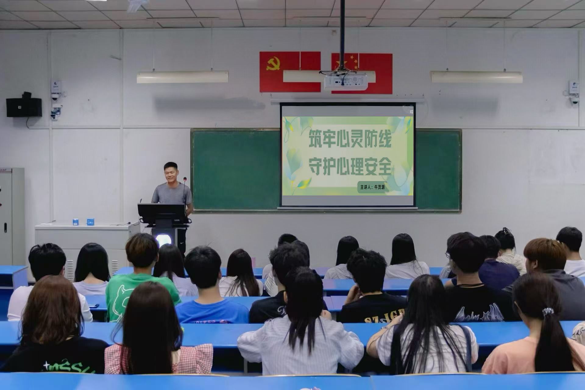 9月29日,太阳集团网站872223级辅导员牛茂源在2306教室开展“筑牢心灵防线,守护心理安全”讲座。