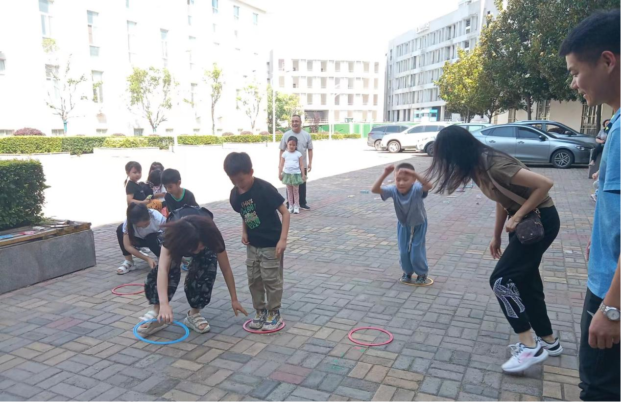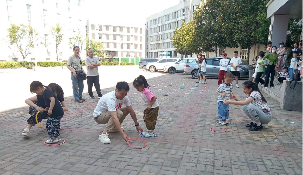 紧接着,在艺术楼前,孩子和家长们参加了趣味亲子游戏。快乐呼啦圈让孩子感受和爸爸妈妈在一起玩游戏的温馨,趣味套圈活动不仅考验他们的智慧,还考验他们掷圈的技巧,没参加活动的家长及孩子都在旁边充当啦啦队,不断呼喊加油,将活动现场气氛推向高潮。