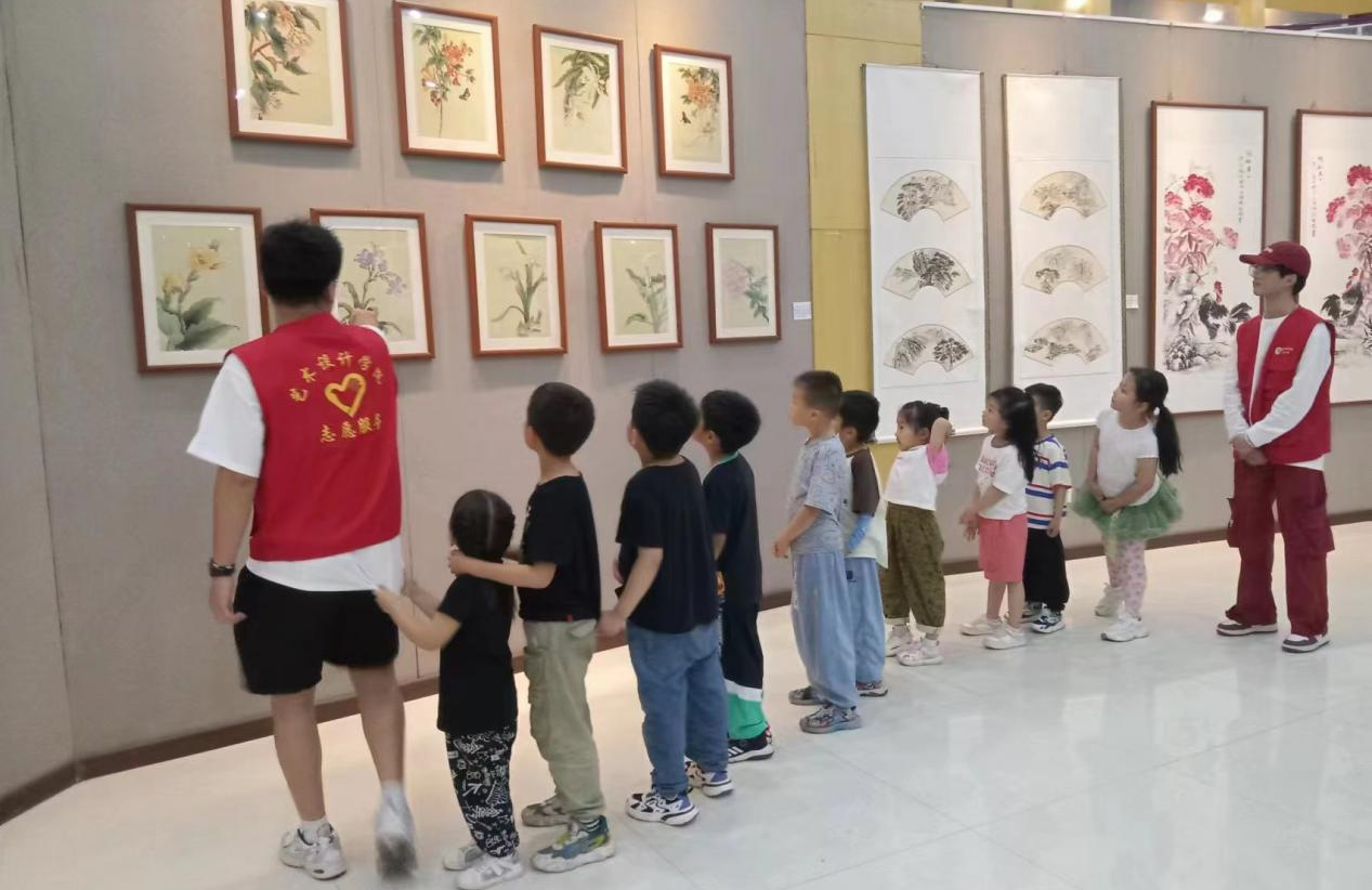 活动一开始,由学生志愿者带小朋友参观太阳集团网站8722毕业设计展,孩子们看着不同的设计作品,非常兴奋,同时也仔细聆听讲解员的讲解,遇到有意思的画作时,还在一起讨论。参观设计作品展,让孩子们感受到了艺术之美,陶冶了情操,收获颇丰。