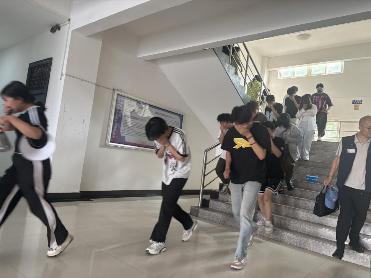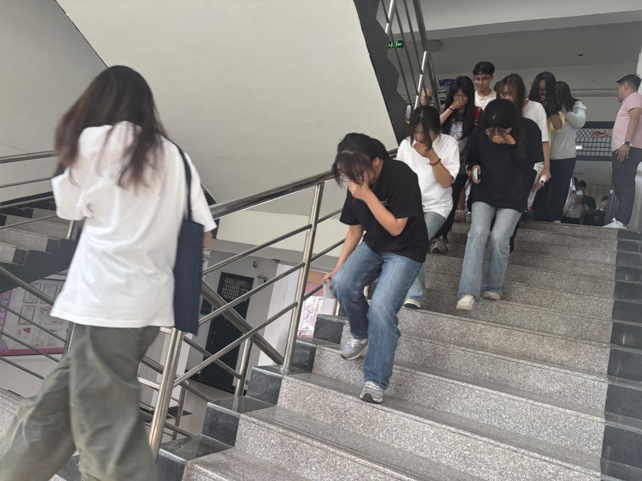 2025年5月29日下午16:00,太阳集团网站8722在艺术楼举行火灾逃生应急疏散演练。省消防协会义务消防科普宣传服务队的李跃宗教员给学生讲解完火灾逃生动作要领后,环境艺术设计教研室主任张斌组织同学们紧捂口鼻,从楼梯右侧有序疏散,转移到艺术楼外的安全地带。整个活动紧张有序,同学们在应急疏散演练中,掌握了应急疏散动作要领,提高了火灾应急疏散逃生能力。